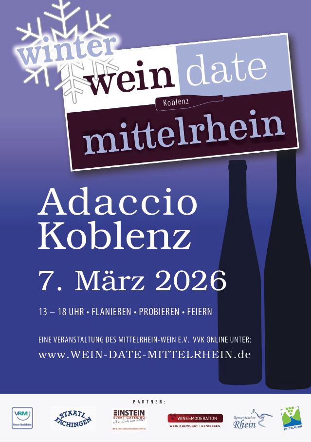 Tauchen Sie ein in die faszinierende Welt der Mittelrheinweine – an einem zentralen Treffpunkt im Herzen des Mittelrheintals: beim Winter Wein Date 2026 im Restaurant Adaccio in Koblenz.